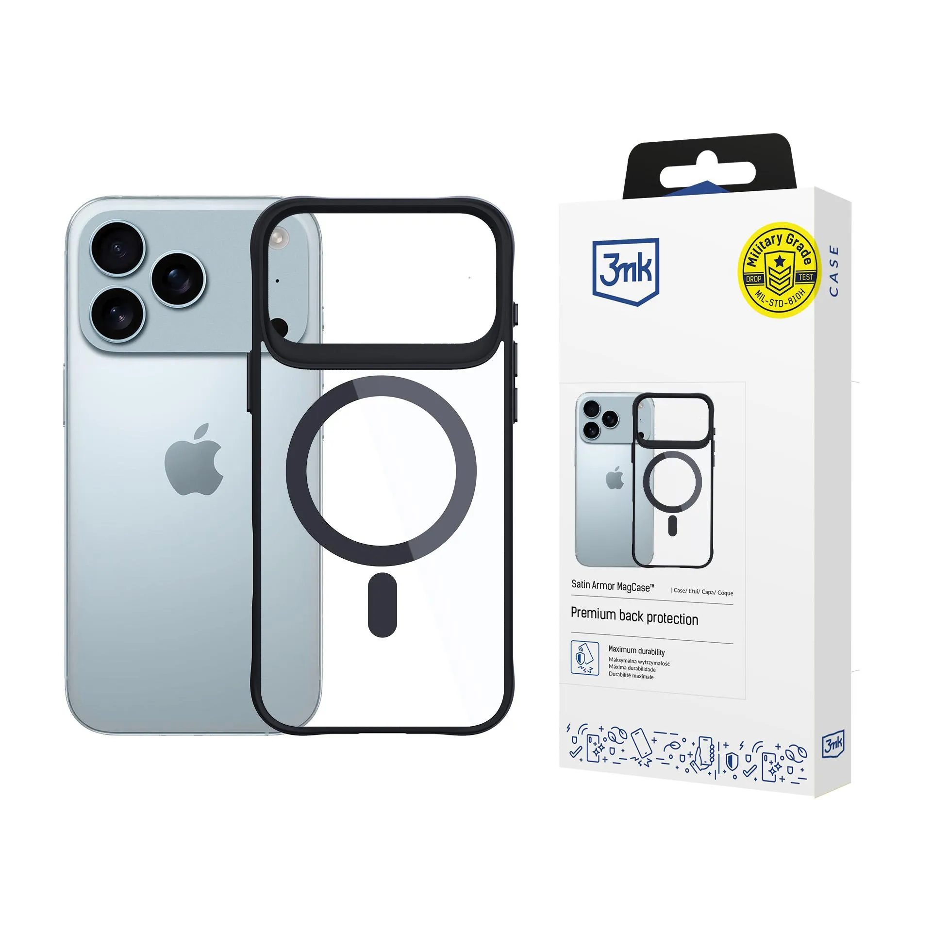 Satin Armor MagCase™ dá-te a certeza e a tranquilidade de que, em caso de queda do smartphone sobre uma superfície dura, este ficará perfeitamente protegido contra danos. A fiabilidade da capa em situações de risco quotidianas e extremas é confirmada pelo certificado Military Grade, atribuído após a realização de rigorosos testes de queda independentes. Um flagship protegido com Satin Armor MagCase™ aterra suavemente e sem danos – também em betão, azulejos e pedras. A resistência máxima do produto resulta, entre outros fatores, da construção baseada numa parte traseira rígida, fabricada em policarbonato (PC).
