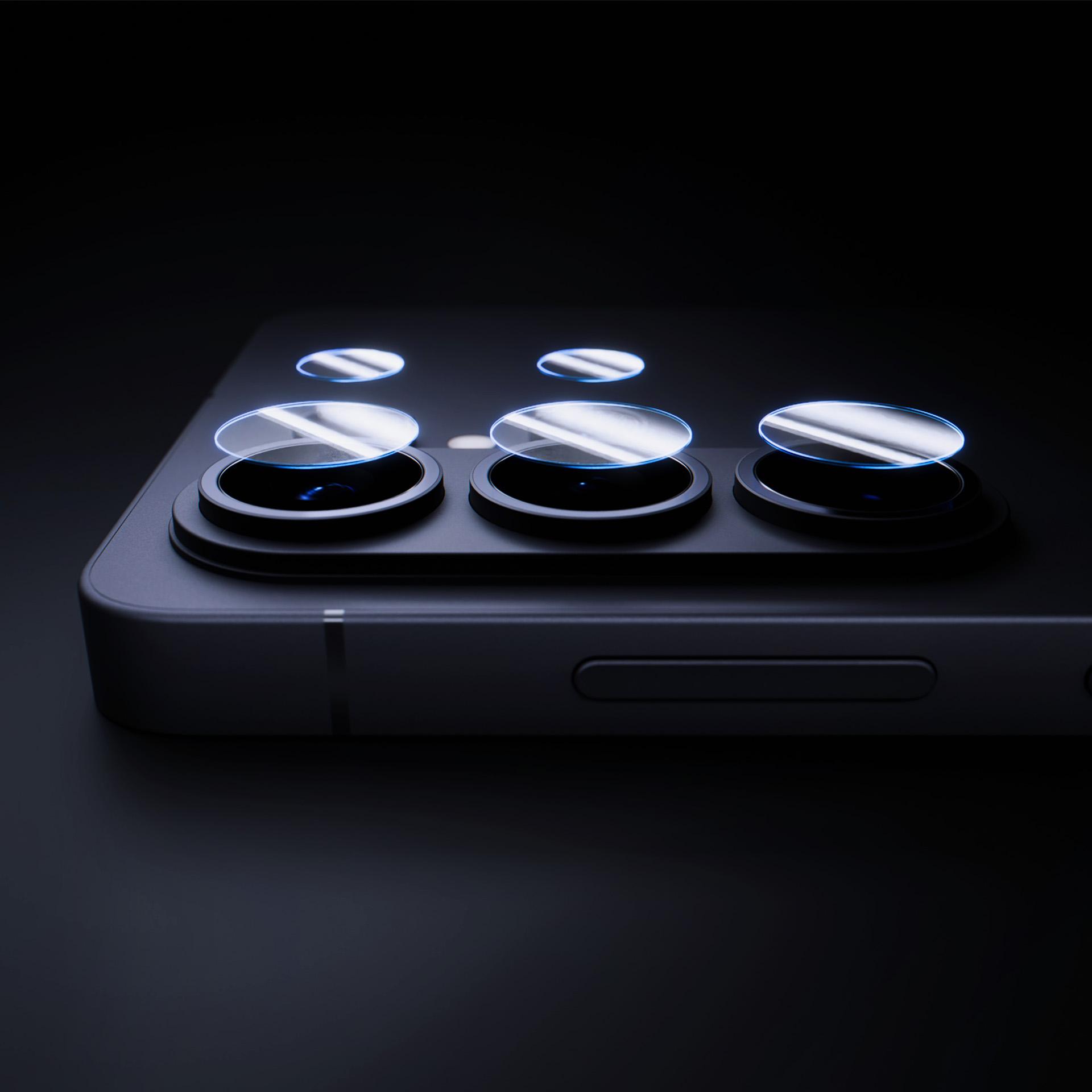 Proteção visível em ação, invisível nas fotografias. É um vidro híbrido inovador que combina a flexibilidade de uma película com a durabilidade do vidro. Graças à sua construção única, aumenta a resistência da câmara a danos até 300%, proporcionando uma proteção sem precedentes contra riscos, lascas e fissuras.